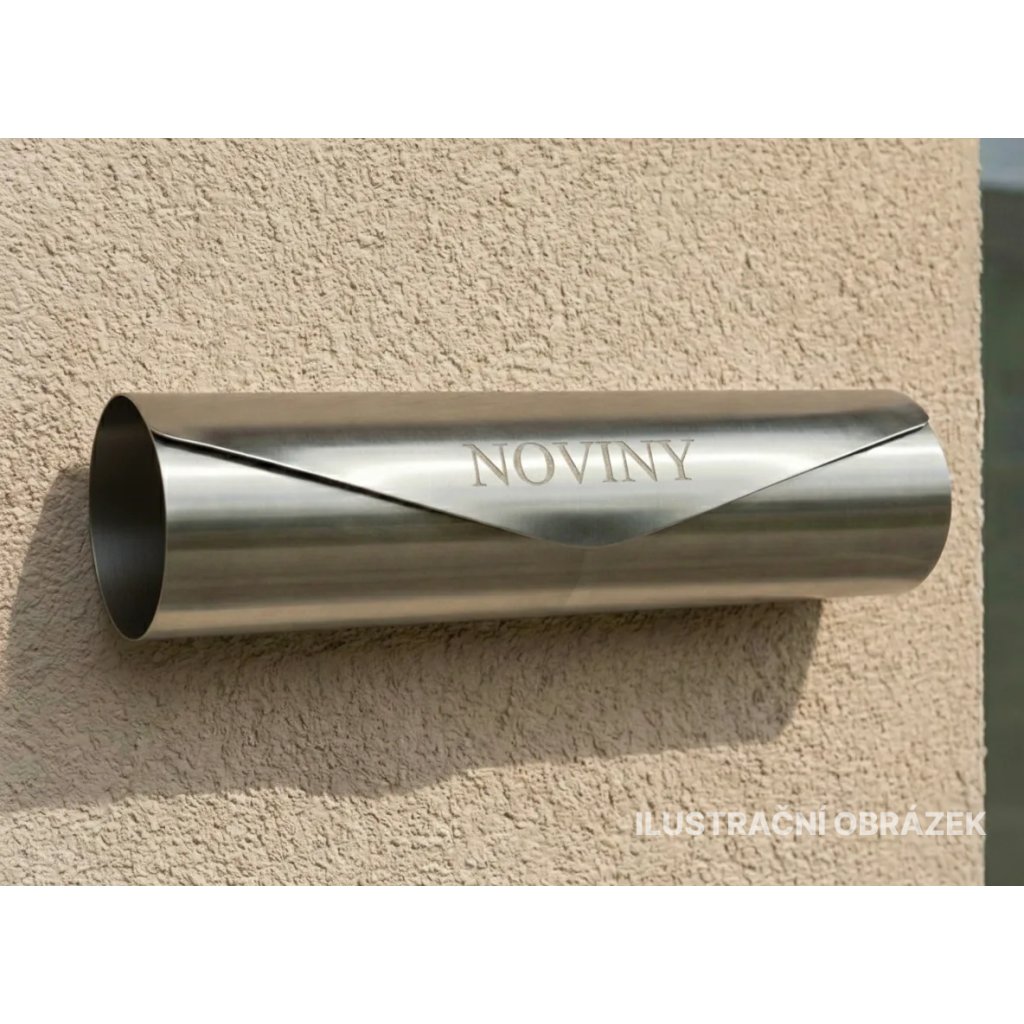 Poštovní schránka "Trubka" je optimální volbou pro noviny a tiskoviny. Chcete-li tubus sladit s domem, opatříme ho nápisem dle vašeho přání (např. „NOVINY“, číslo popisné nebo jméno) pomocí technologie pískování. Nápis jemně vystupuje nad broušený povrch, má matný stříbrný odstín a působí velmi decentně a originálně.